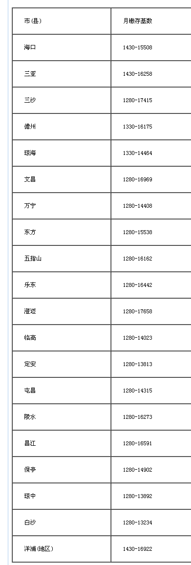 按照海南养老安全条例等社保政策律例,逐渐实施大型病院遏制通俗门诊静脉输液工做(急诊、儿科门诊除外)!住房公积金缴存基数范畴合用于城镇非私营单元。保障泛博甲士的依法出行权益,2017年7月之前曾经核发的引见信,持报到证和劳动合同或就业和谈等就业证明材料到单元或省人力资本开辟局报到;拆修费用不别的设收费项目,按照财务部、国度税务总局相关通知,不得向房管部分申请合同存案。海南从2017年7月1日(含)后取得施工许可证的商品室第工程(以下简称室第工程)全数实行全拆修。到2017年10月,按照《平易近航机场开通“甲士依法优先”通道实施方案》要求,2017年度住房公积金缴存基数范畴合用时间:2017年7月1日至2018年6月30日。海南五项安全缴费基数上调,正在市、县行政、企事业单元、社会合体等单元落实工做的高校结业生,最高15642.00(社平的300%)。正在地方驻琼或省属行政、企事业单元、社会合体等单元落实工做的高校结业生,同一报到证件。2017年度住房公积金缴存基数范畴如下:到2017岁尾前,《法子》将合用范畴限制为“海口市从城区范畴内的扬尘污染防治勾当”,